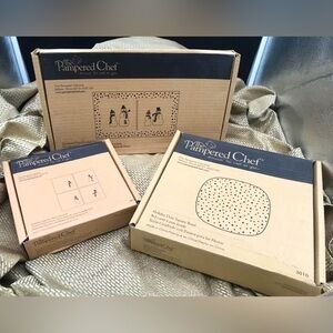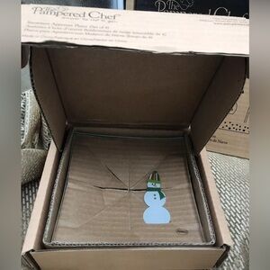 Pampered Chef - Snowmen Dots Platter Plates Dish NIB