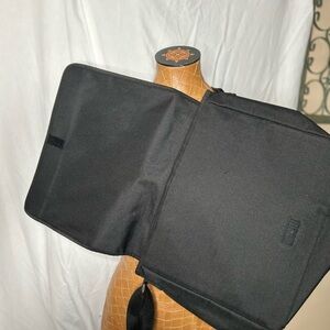 Comes with outside Velcro pocket, business card peek-a-boo pocket, Flap fold over, Velcro closure for main pocket