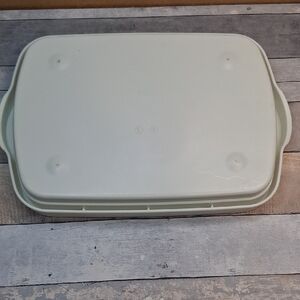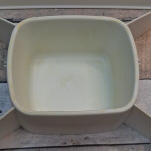 Insert that can be frozen/ refrigerated prior to use to keep items cold. One side is flat for veggies and includes four dividers and a cup for dip. The other side can be used for deviled eggs. Measures approx. 14” x 9” inches. May be some scratches, scrapes, and slight staining, as seen in pics; otherwise in great used condition!