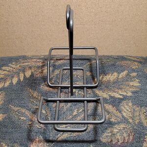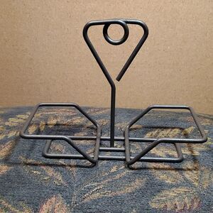 Holds two Small Square Bowls. Top coil handle doubles as a card-holder. Sleek wire design.