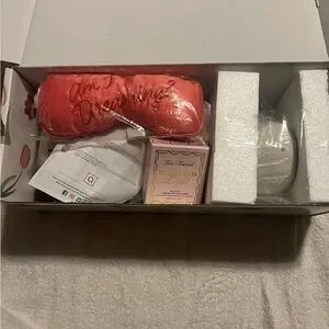 Set includes “Wen” fall fresh apple cleansing conditioner, wellness log, diamond light multi use diamond fire highlighter, Beekman pure goat milk soap, turbie band, Elemis pro-collagen marine cream, cup for tea or coffee and “Am I Dreaming “ eye mask. New never used.
