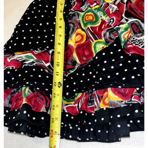 Pampolina Girls Black Skirt Sz 9 Red Floral White Polka Dots Velvet Trim Ruffles