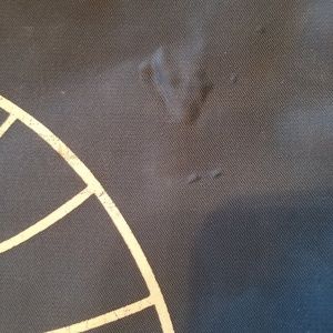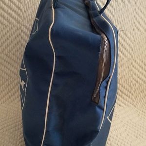 PAN AM TRAVEL BAG FROM 1963-1970. Same as one featured in the movie "Catch Me If You Can". Vinyl in good condition with 2 small areas of tears and markings one on each side. See photos.Logos are in very good condition. Zipper works and inside good. Handles are in good condition also. Clean inside with no smells.