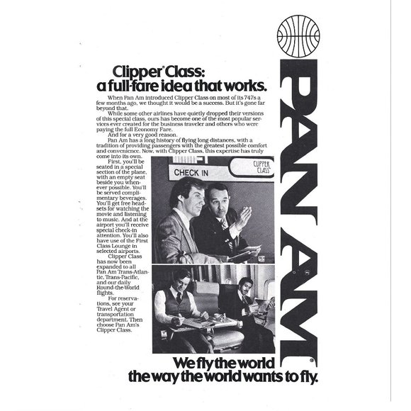 Pan am Clipper Class Airlines Advertisement 1970s Vintage Print Ad 9 inch