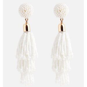 Panacea Anthropologie White Beaded Dangle Tassel Earrings White Drop Pierced