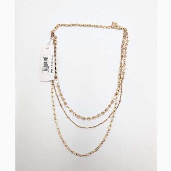 Panacea Gold Tone Triple Layer Chain Necklace Multi-Strand Fashion Jewelry