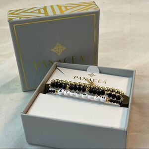Panacea Bracelets Beaded Set of 3 Strength Stacking Gold Black