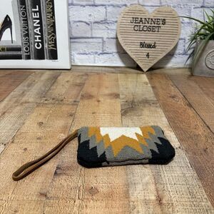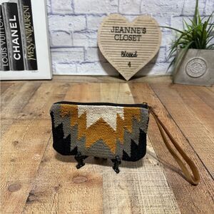 Cream, camel and black western-inspired wristlet