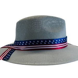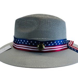 Panama Hat Xeal Men & Women NEW! Silver in color, USA Flag Band, New!