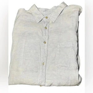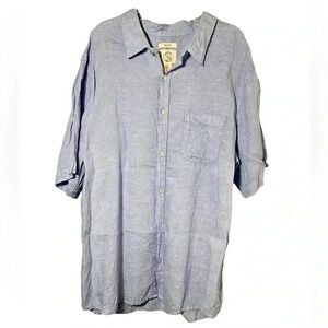 Panama Jack 100% Linen Mens XL Baby Blue Button Down Short Sleeve Shirt EUC