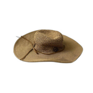 Panama Jack 100% Paper Floppy Hat One Size Tan Summer Vacation Beach Pool Travel Tie-detail