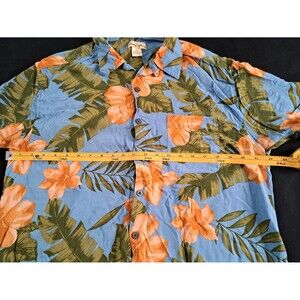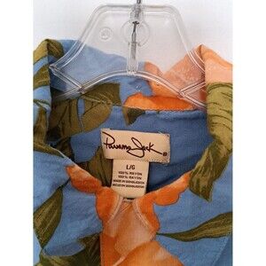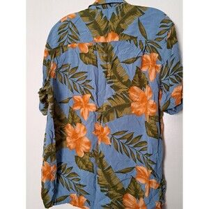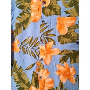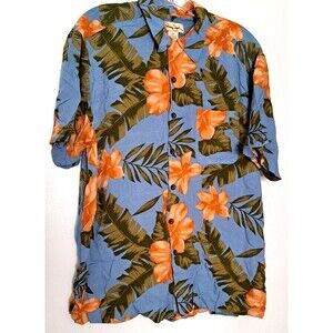 Panama Jack Blue Hawaiian Shirt w/ Orange Tropical Flowers Floral Size L Men's