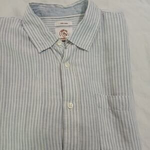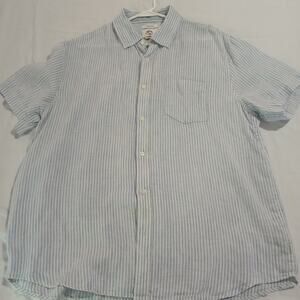 Panama Jack Blue and White Stripe Short-Sleeved Button-Up Shirt 100% Linen XL