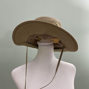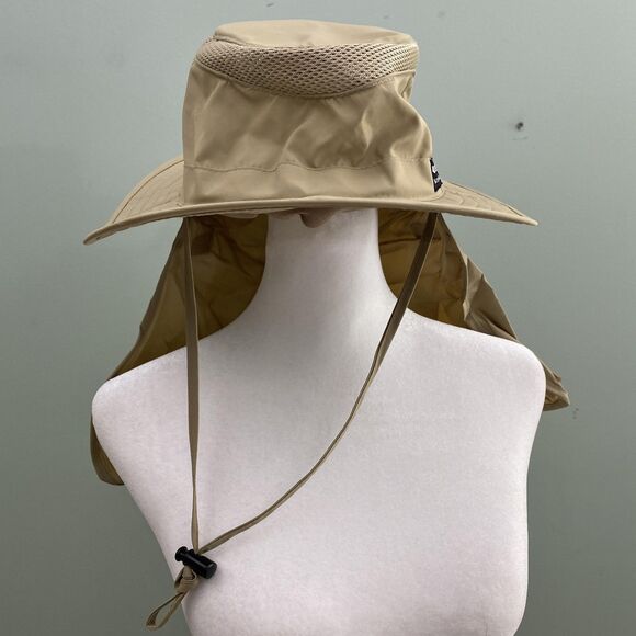 Panama Jack Hat Wide Brim Safari Boonie Mesh Vent Flap Strap Back Tan Mens S/M