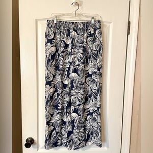Panama Jack Navy Blue Floral Tropical Wide Leg Linen Blend Pant Size L Pull On