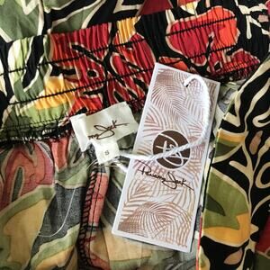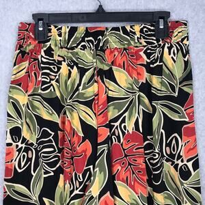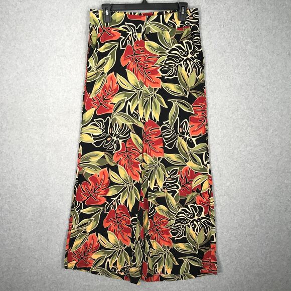 Panama Jack Pants Womens Small Floral Wide Leg Crop Aloha Coconut Flowy Tropical Hawaiian Red Green Pocket Beach Vacation Resort Peasant Pocket Elastic Waist