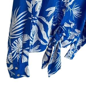 Panama Jack Royal Blue and White Hawaiian Button Up Linen Shirt - Large