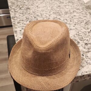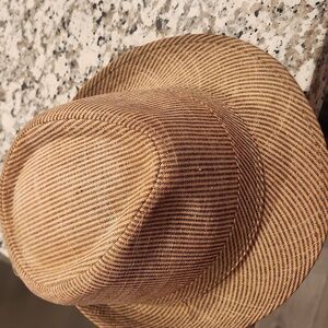 Elegant Panama Jack hat with tan and brown stripes. Ideal for stylish outings.size Large