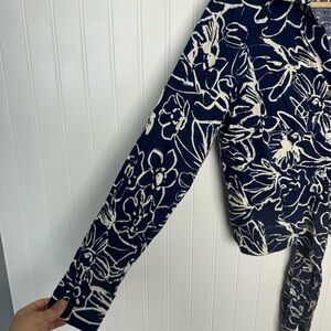 Panama Jack Top Small Women Navy Blue White Floral Long Sleeve Linen Breathable