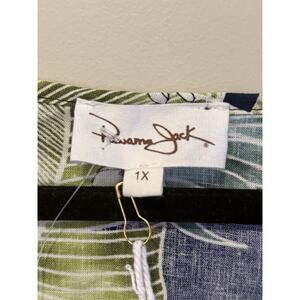 Panama Jack Top Women's Size 1X Green Blue Short Sleeve Floral Linen Beachy NWT