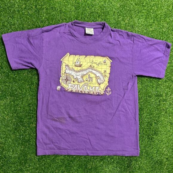 • Features vintage style treasure map design of Panama with compass rose, ships and anchors