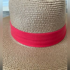 ☀️ Only worn once! Panama straw hat for women. Bright pink ribbon wraps around hat. Velcro strap inside helps adjust size for perfect fit. Perfect for days spent in the sun! ☀️