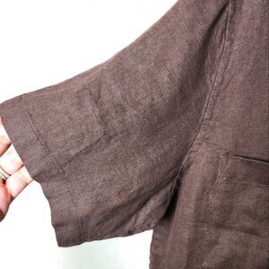 Panama Jack Linen Button Down Short Sleeve Top European Flax Brown Size S