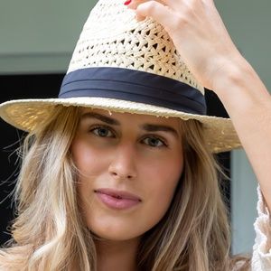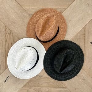 Available in four colors, Black, Tan, White or Natural. Patterned weave accented with black tucked ribbon. Super cute!