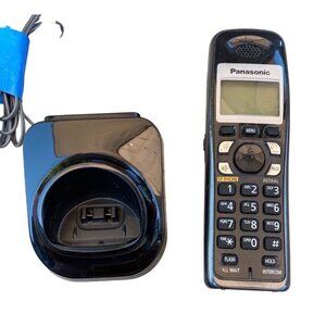 This Panasonic cordless phone charging stand in black is designed for the handset model KX-TGA930T. It is a power cord charging base with model PNLC1004ZAB.