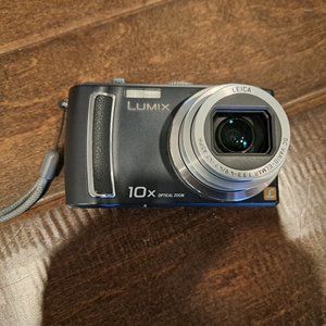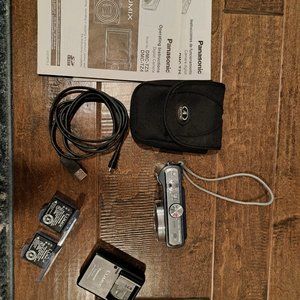 used Panasonic TZ4 Digital Camera; comes with charger, two batteries, usb transfer cord, 2 manuals(english & french?) and storeage carry case.