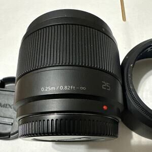 PanasonicH-H025 lumix lens G1:1.7/25 ASPH46W/front,rear caps&hood 0.25m /0.82 ft