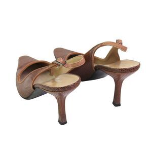 Pancaldi BROWN REAL LEATHER SNAKE MID HEEL POINTED BUCKLE SLINGBACK SHOES Sz 8B