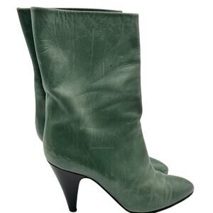 Pancaldi Women's Green Leather Mid Calf Boots Size EU 36 US 5.5-6