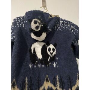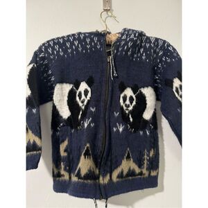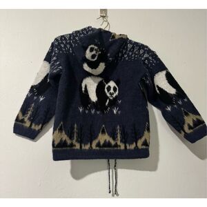 Panda bear wool front zipper hoodie jacket 7/8 kids