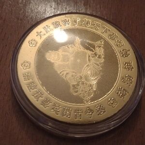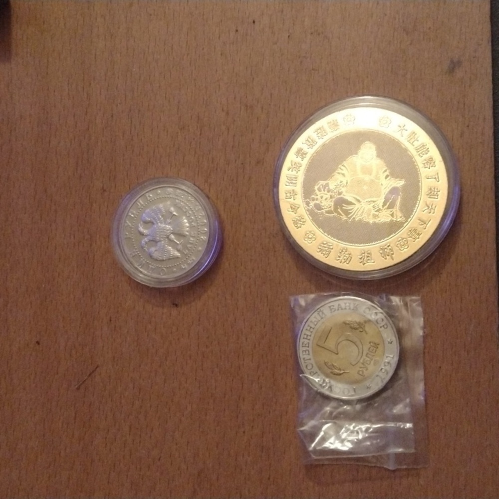 2" OD cased mint gold plated coin and 5 py6nem cccp coin& solid silver cased coin