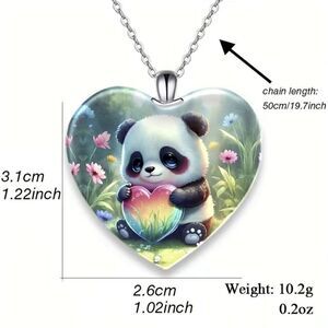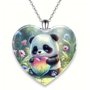 Panda Heart Shaped Crystal Pendant Necklace. Panda Front Saying Back. New.