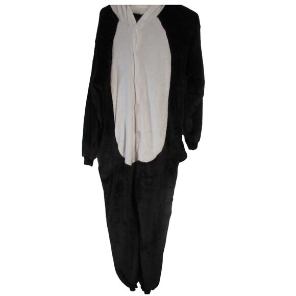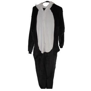 Women's Small Black and White Panda one piece pajama with panda hood