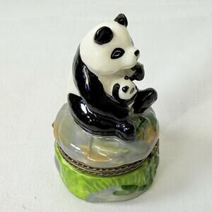 The Panda With Baby Trinket Box is a charming collectible featuring a panda figure with a baby on top. The trinket box is designed to hold small items, making it both decorative and functional. Perfect for those who love panda-themed items or for collectors of unique trinket boxes, this boxed set adds a touch of whimsy to any space.