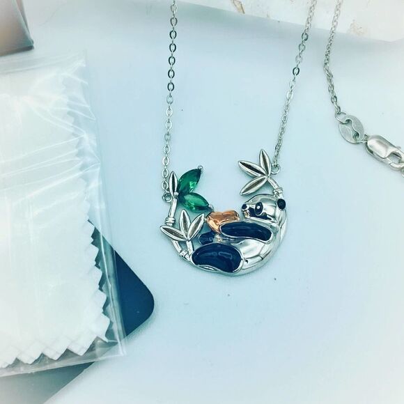 Panda Bear Sterling Silver CZ Necklace