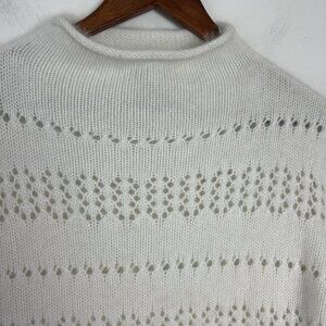 Pandemonium Angora Blend Lace Sweater Women XL Cream L/S Preppy Quiet Luxury
