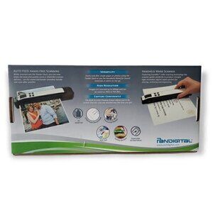 Pandigital PANSCN09BE Handheld Scanner w/Doc Feeder & 2GB microSD Card (Blue). Everything is still new in packaging and has never been opened. Only the box has been open. Batteries not included (they were expired, so they were tossed). Comes with everything seen in photos.