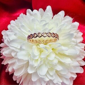 Fall in love with this authentic Pandora 14k rose gold plated heart ring, featuring a full band of delicate open hearts. Whether worn alone or stacked with your favorites, this romantic design adds a soft, feminine glow to any look.