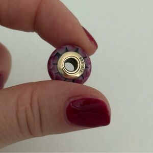 Authentic Pandora 14K Yellow Gold Pink Lotus Murano Glass Rare Retired Bead Charm