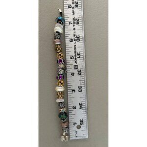 Elevate your style with this Pandora charm bracelet, featuring a sleek black leather cord adorned with a unique mix of silver, glass, and gold-accented beads. A versatile and timeless accessory that adds a touch of sophistication and personality to your jewelry collection.