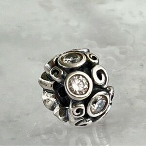Authentic Genuine Pandora Retired Clear CZ Stone Primrose Path Swirl Charm EUC