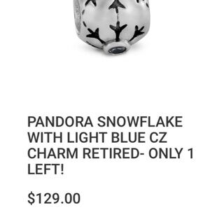 Authentic Genuine Pandora Retired Light Blue CZ Snowflake Charm EUC