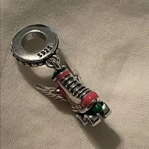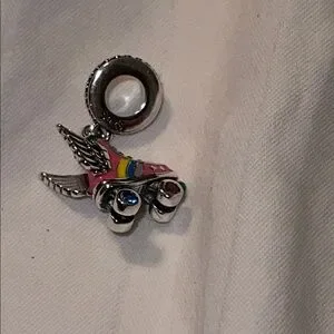 Pandora 925 Sterling Silver Colorful Roller Skate Charm Pendant with Wings. Features vibrant colors and intricate details.