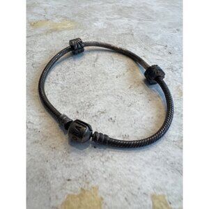 Pandora 925 Sterling Silver Snake Starter Bracelet with 2 Charm Clips Patina