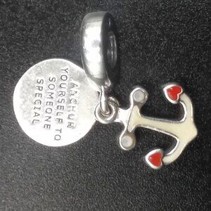 Nice preowned, authentic, Pandora ALE charm. This is the Anchor Yourself to Someone Special charm bead. This is designed out of 925 sterling silver, features enamel and faux pearls.