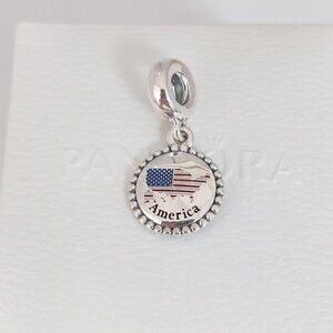Pandora America Flag Map Exclusive Travel Dangle Charm S925 Silver with box